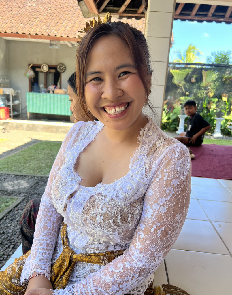 The beautiful woman who invited me. Who has looked after me every time I’ve stayed at the Swan Paradise. Who saw me arrive in full Balinese dress and looked genuinely amazed. Her open beautiful heart that is a genuine  blessing for anyone to be within her space. Sri, thank you for letting me into your family’s sacred day. I will never forget it.