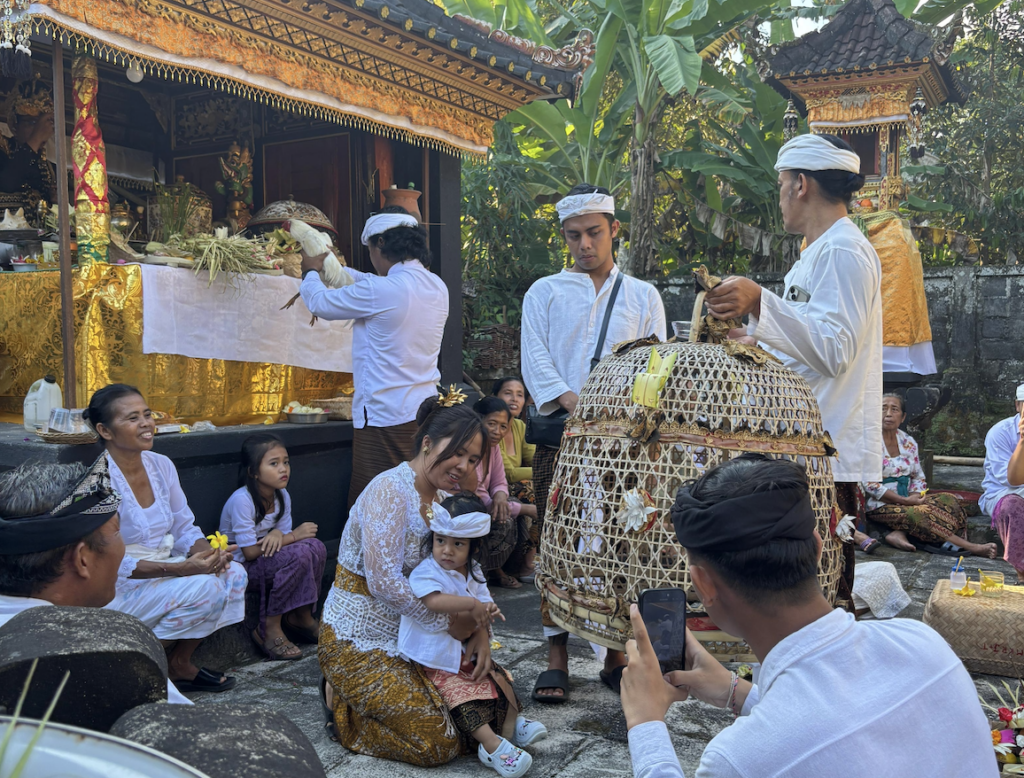 Sri Augustine, who works at the Swan Paradise here in Bali, who has looked after me like family every time I’ve stayed — invited me to her son’s hair-cutting ceremony. Her son is three years old. And yesterday, for the very first time in his life, his hair was cut.